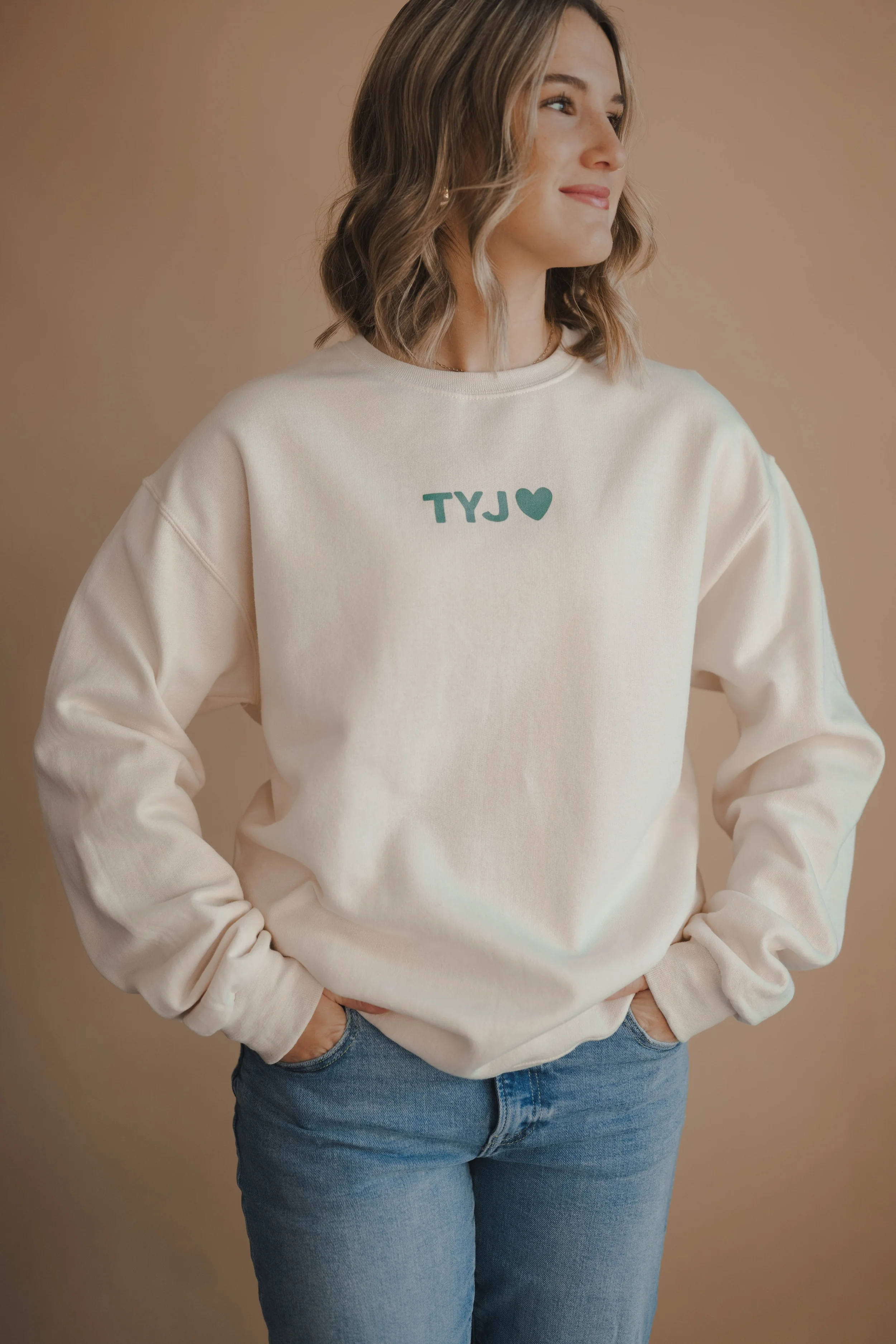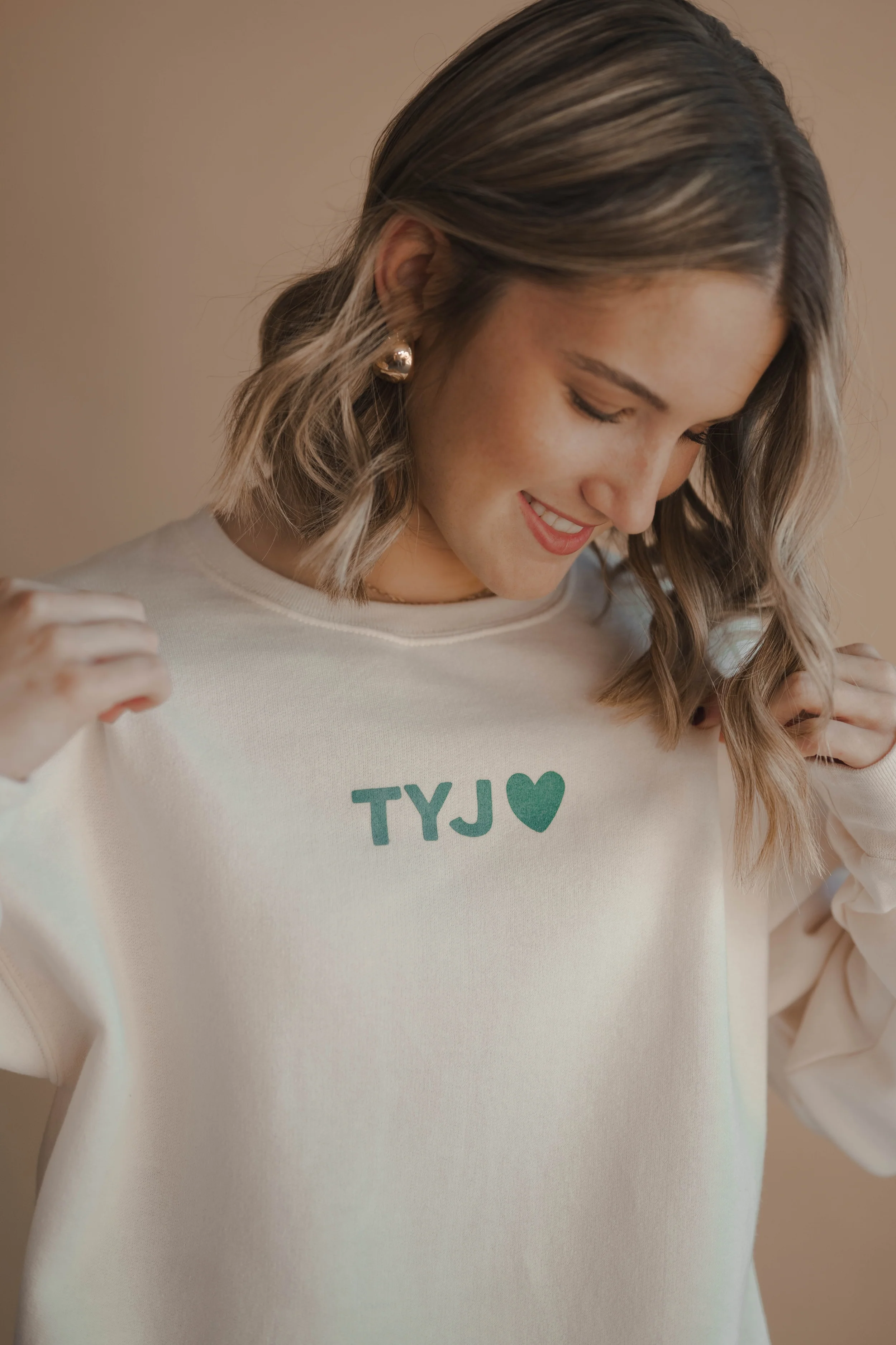Soft Cream/Ivory Pullover with Muted Teal Ink